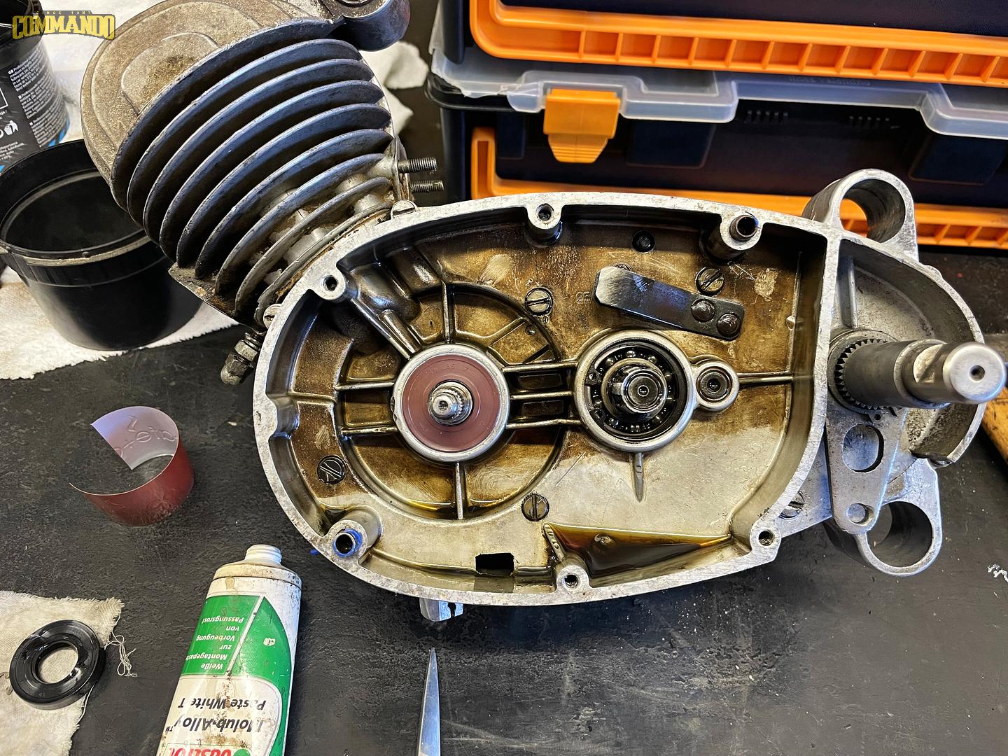 Už je vyměněné i pravé gufero kliky a gufero výstupního hřdele |