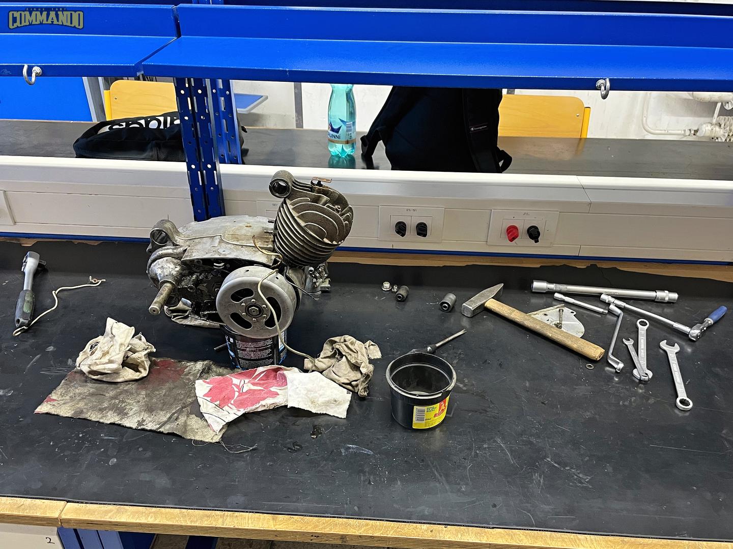 Motorka je komplet, probíhá úklid nářadí a přípravků |