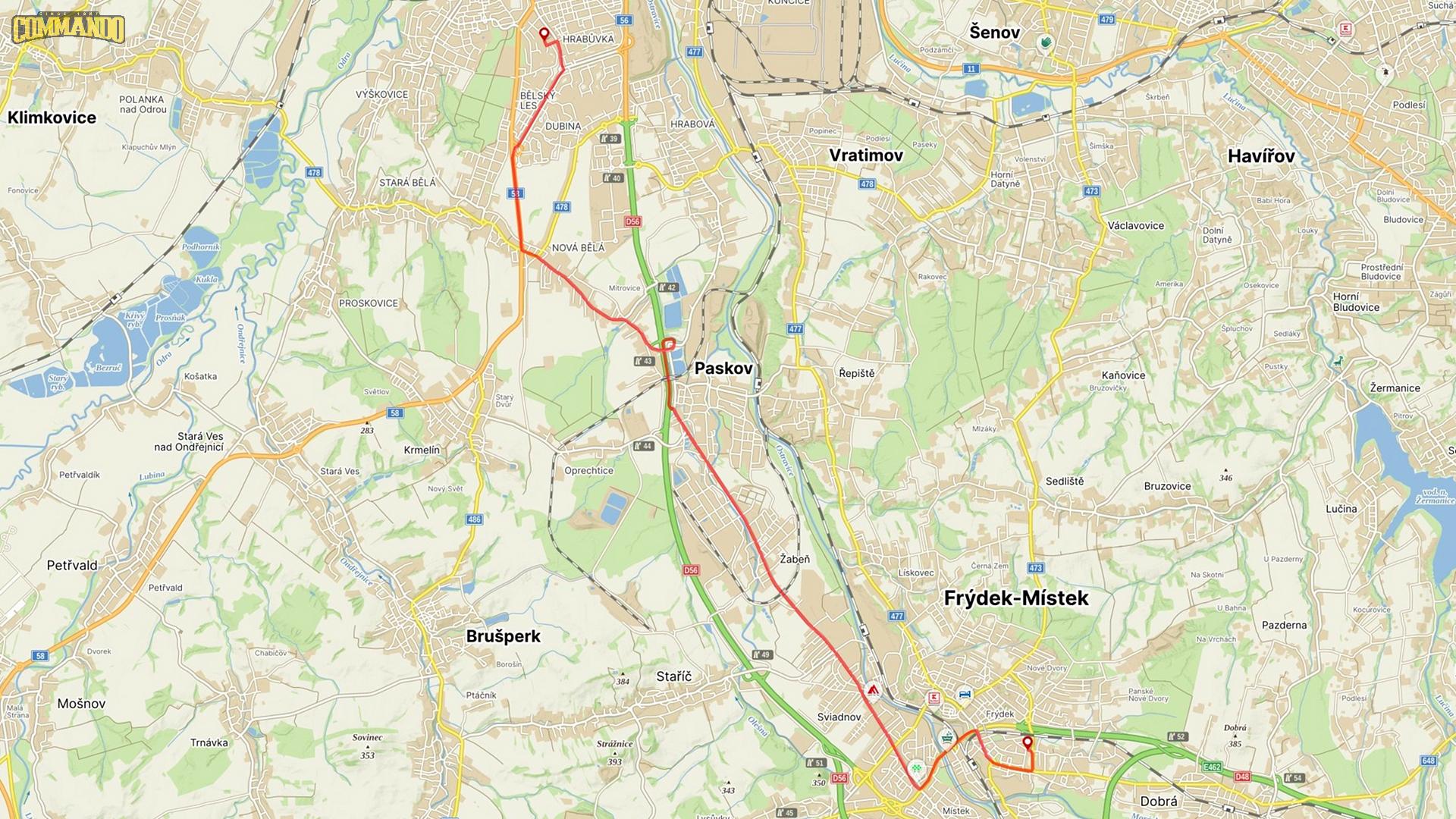 ![]() Opět zastávka ve Frýdku, bylo zapotřebí zašít trhlinu na kalhotách |