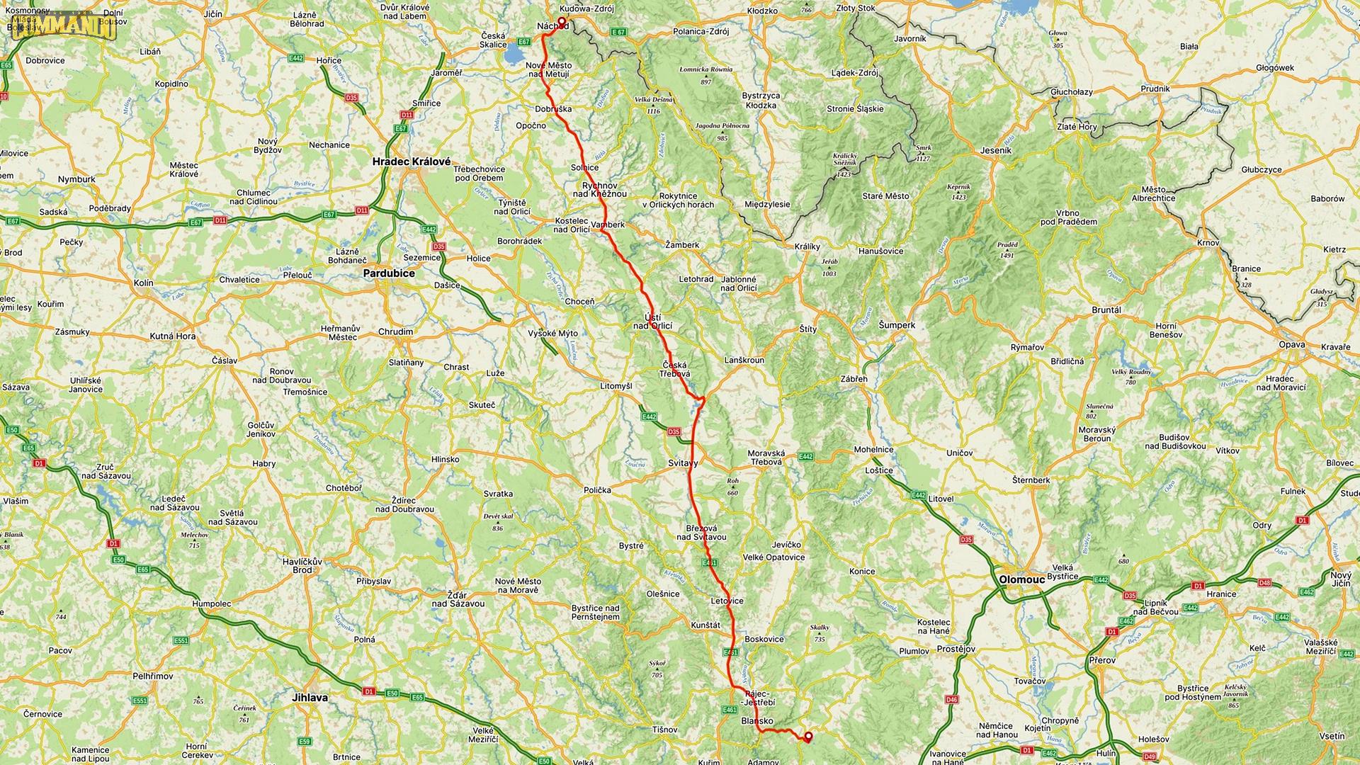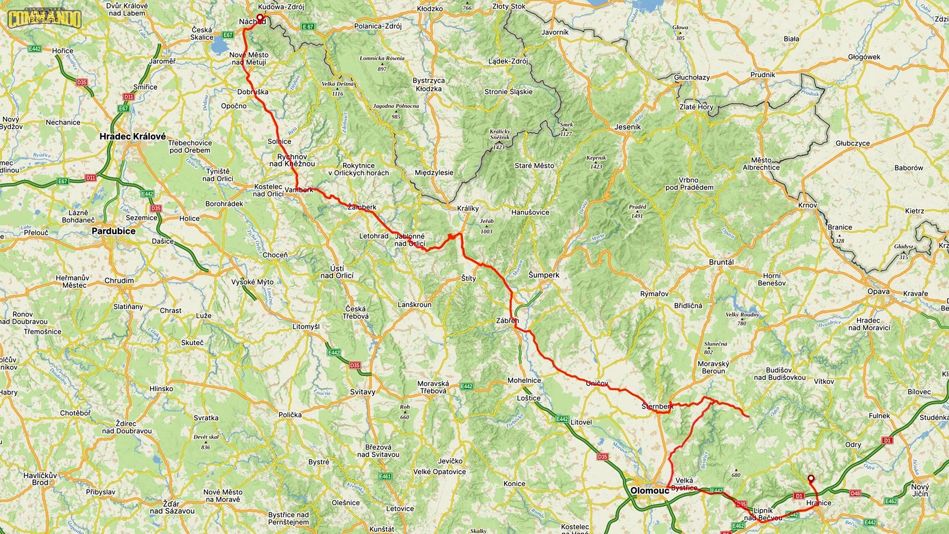 ![]() Přibližná trasa devátého dne |